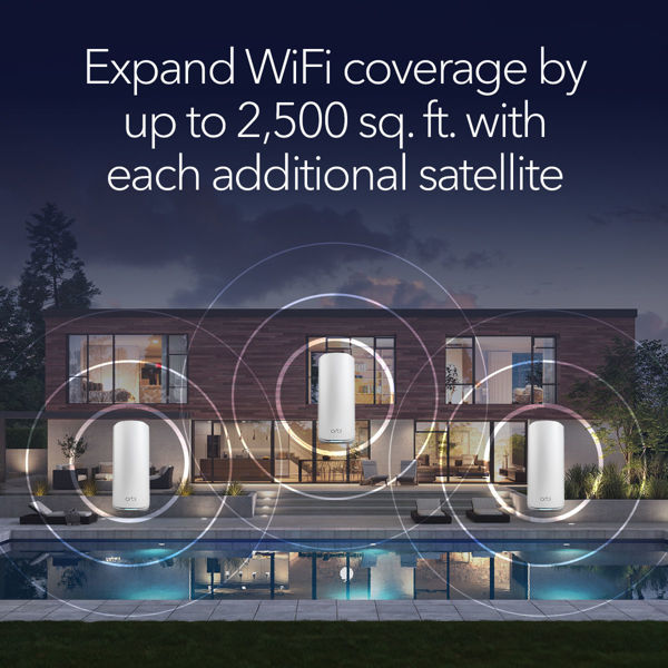 Each Orbi satellite adds 3,000 sq. ft. of additional WiFi 7 coverage to your existing Orbi 870 Series mesh system