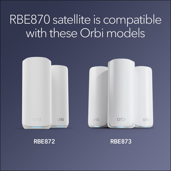 Expanding your Orbi system is as easy as the push of a button. Compatible with RBE872 and RBE873 Orbi WiFi 7 Systems